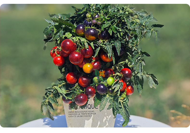 番茄是茄科一年生草本植物,全体生粘质腺毛,有强烈气味。叶羽状复叶或羽状深裂,长10-40厘米,小叶极不规则,大小不等,常5-9枚,卵形或矩圆形,长5-7厘米,边缘有不规则锯齿或裂片。观赏小番茄一般是指那些被专门培育出来,用来观赏的小番茄品种。植株相比一般的番茄要矮小得多,果实也比较小巧。小番茄的果实一般有深红、淡红、淡黄、橙黄等多种颜色。最重要的是,果实是可食用的。而且味道不错。